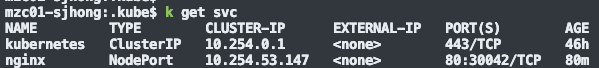 이것을 계속 확인해보면 아래와 같이 서비스로 생성된 NodePort를 볼 수 있습니다. 제가 기존 생성했던 Port번호와 같은걸 확인할 수 있습니다. 만약 NodePort가 2개라면 2개가 생성되어있을겁니다. 계속 확인해보겠습니다.