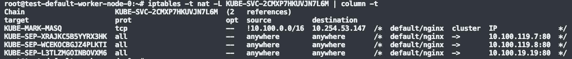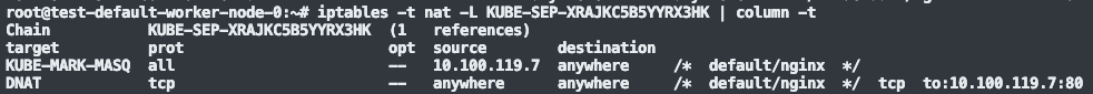 해당 체인도 확인해보면 아래와 같이 Service와 연결된 POD의 IP주소도 확인 됩니다.