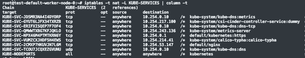 iptables를 통해 체인을 확인해보면 KUBE-NODEPORTS가 확인되는데요.